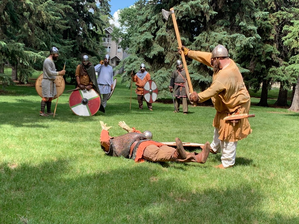 Our demonstrations include village setups and daily life activities such as combat, cooking, a variety of knowledgeable craftspeople working with period tools and materials, grand storytelling of sagas and myths. And if you’re lucky, you might even find a Viking merchant willing to engage in a bit of trade.