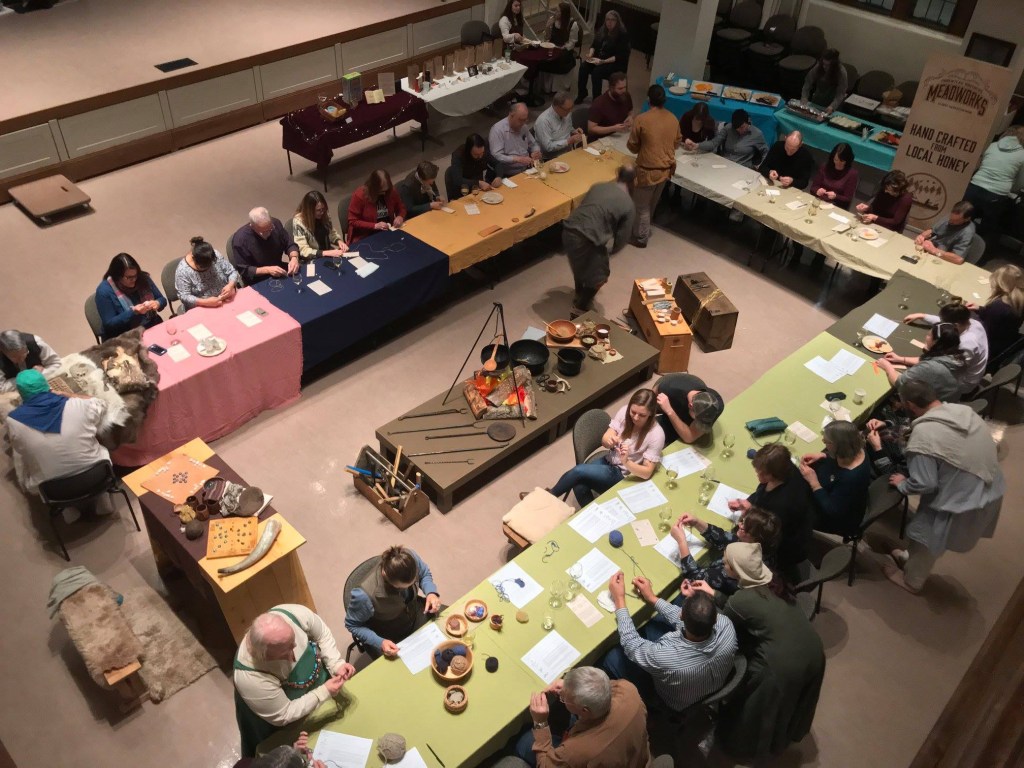 Attendees learned how to play Hneftafl, a popular Norse game, a new needlecraft called naalbinding and enjoyed a typical meal and a glass of delicious mead during this evening workshop sponsored by the Museum of Antiquities at the U of S.